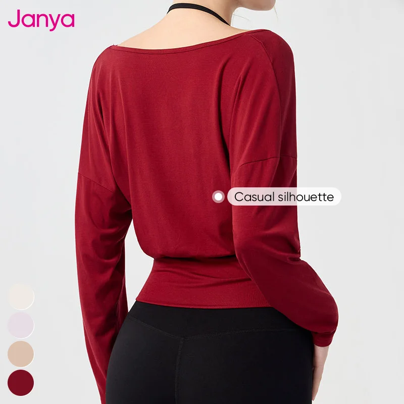 Janya Wholesale Lightweight High Quality Long Sleeve Gym Shirts Fitness Sports Blouse Top Skinny Deep V Neck Yoga Top for Ladies